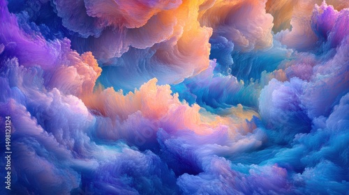 Wall mural : Abstract colorful clouds in soft pastel hues overlapping layers