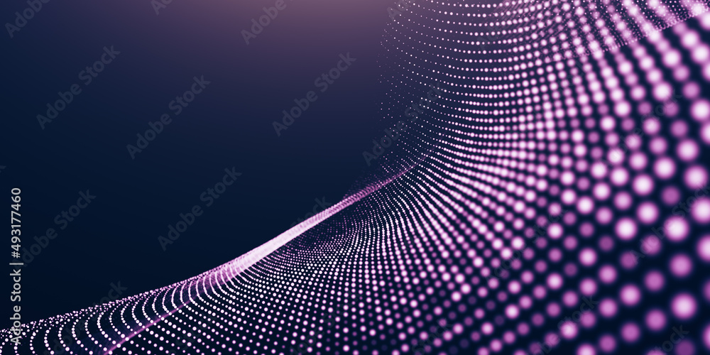 The watermark will not be included on Wall mural.: Abstract colorful digital particles wave with bokeh and light background, 3d render wave line dot ba