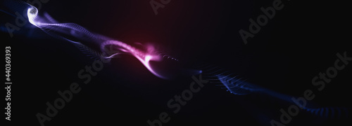 The watermark will not be included on Wall mural.: Abstract colorful digital particles wave with bokeh and light background, 3d render wave line dot ba