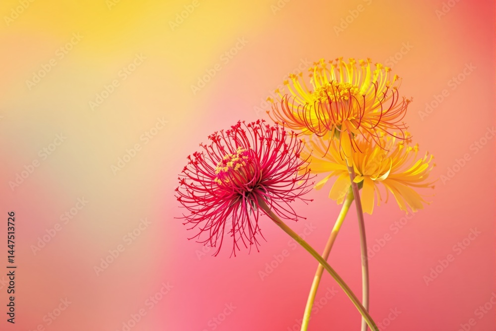 The watermark will not be included on Wall mural.: Abstract colorful flowers with intricate petals against a soft light gradient background in a creati