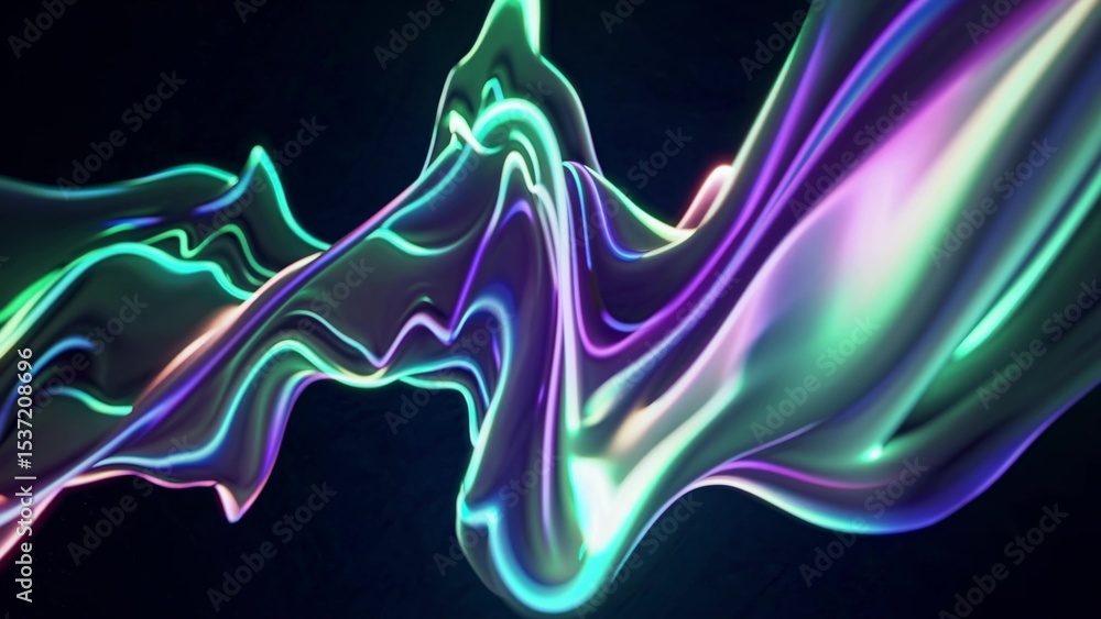 The watermark will not be included on Wall mural.: Abstract colorful fluid waves moving and flowing on dark background, creating dynamic and vibrant vi
