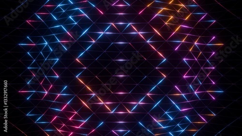 Abstract colorful futuristic glowing disco neon lines animation background, 4k seamless vj loop backWall mural