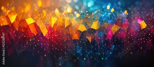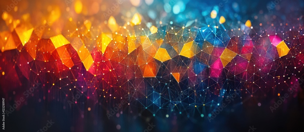 Wall mural : Abstract colorful geometric background with polygonal shapes and connecting dots in a vibrant digita