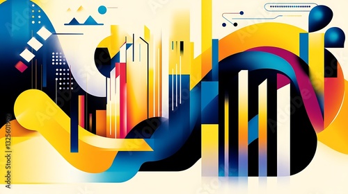 Wall mural : Abstract colorful geometric shapes with modern design elements for creative backgrounds and visual p