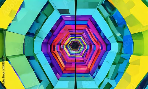 The watermark will not be included on Wall mural.: Abstract colorful hexagonal tunnel, vibrant geometric pattern, 3d rendering -