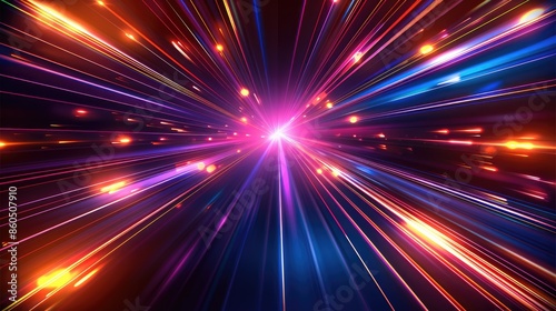 Wall mural : Abstract colorful light rays background vector illustration design with a blur effect - central persp