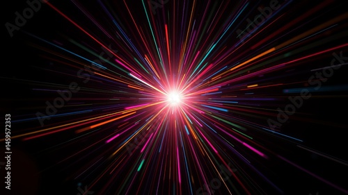 Wall mural abstract colorful light rays burst from bright central point exploding outwards in a dynamic starbur