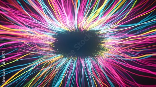 Wall mural : Abstract colorful lines radiate from a dark central void space