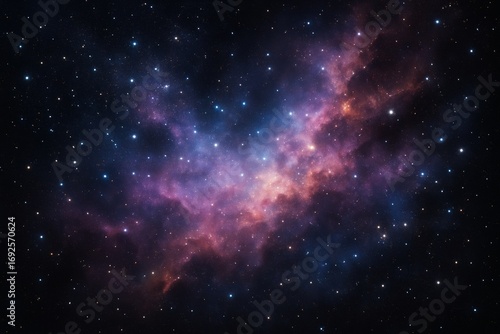Wall mural abstract colorful nebula with glowing stars in deep outer space on dark background, cosmic light clo