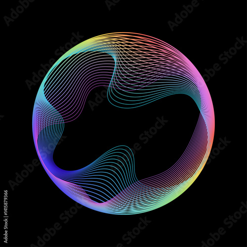 Wall mural abstract colorful rainbow spectrum wave lines in round shape. neon iridescent wavy line circle frame