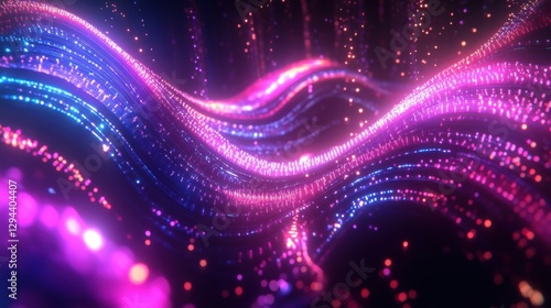 Wall mural : Abstract colorful wave background with glowing particles and light