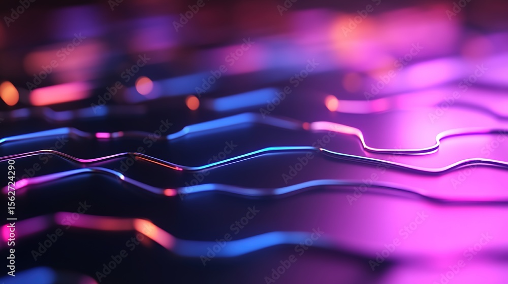 Wall mural abstract colorful wavy lines with light reflections in dark background