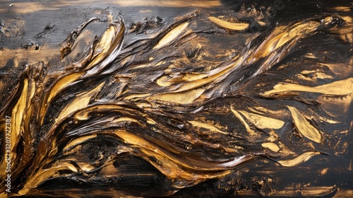 Wall mural : Abstract composition of gold and brown swirls on textured black background highlighting dynamic move