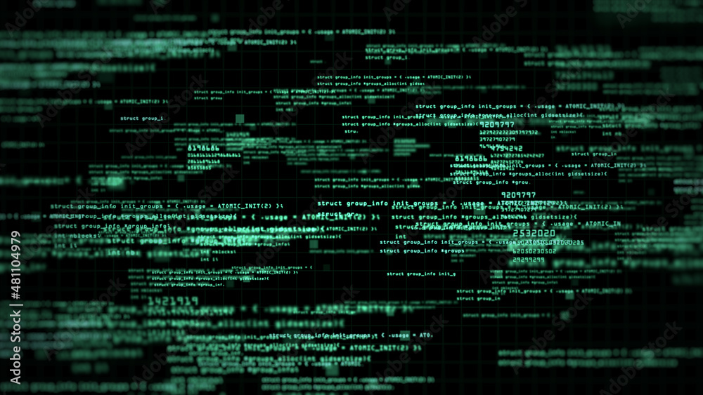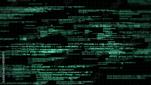 Wall mural abstract computer code running technology digital cyberspace. programming code moving on a black scr