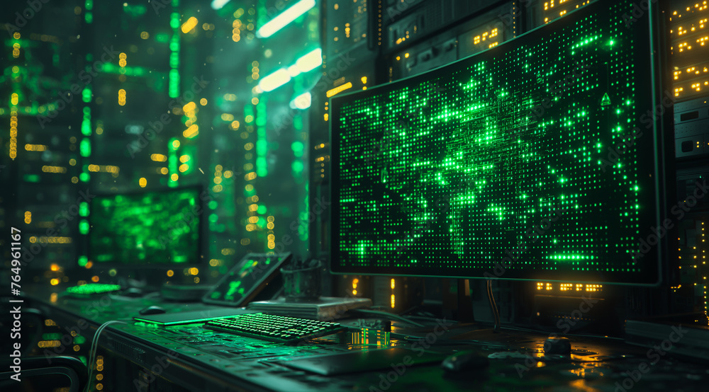 The watermark will not be included on Wall mural.: Abstract computer coding with glow light