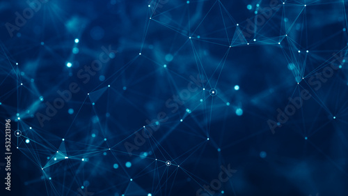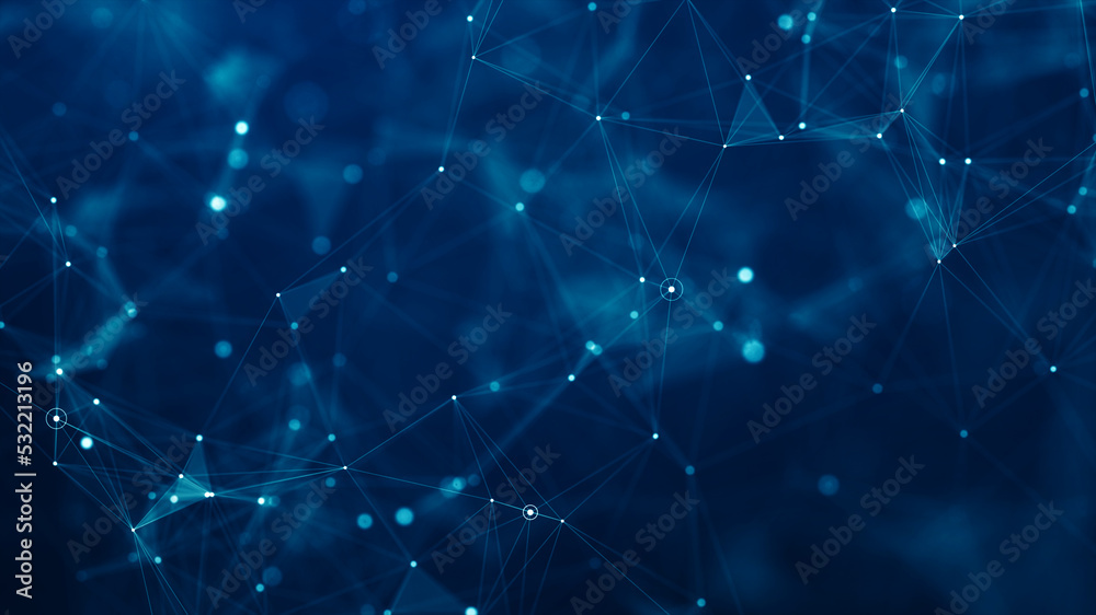 Wall mural abstract connected dots and lines on blue background. communication and technology network concept w - Wall murals Wall mural abstract connected dots and lines on blue background. communication and technology network concept w - Wall murals