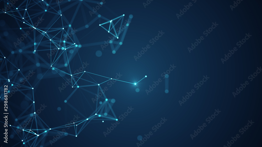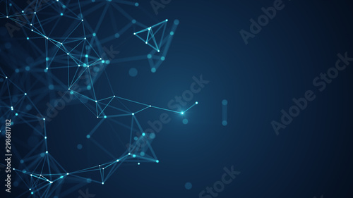 Wall mural abstract connected dots and lines on blue background. communication and technology network concept w - Wall murals Wall mural abstract connected dots and lines on blue background. communication and technology network concept w - Wall murals