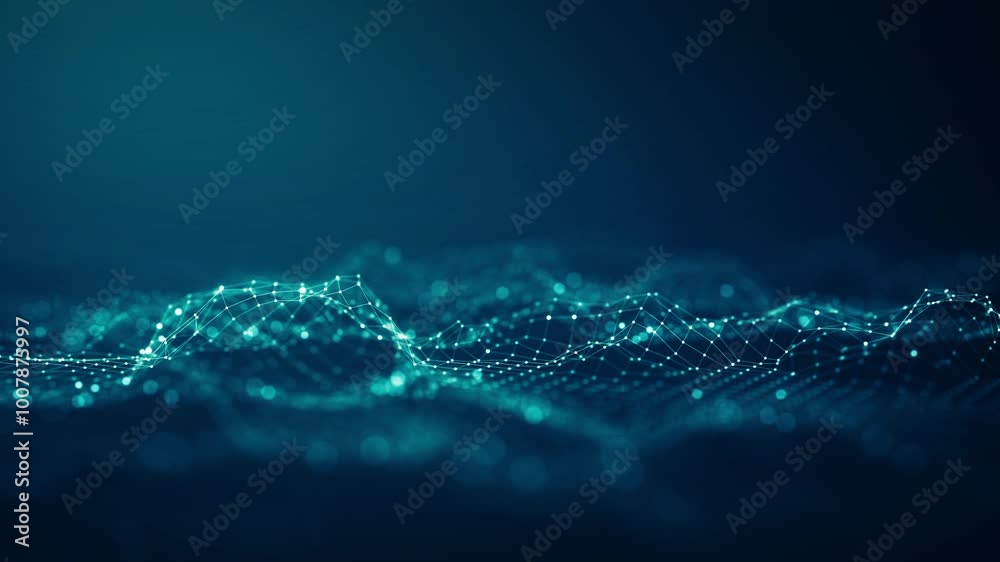 The watermark will not be included on Wall mural.: Abstract connected dots and lines on blue background - communication and technology network concept w