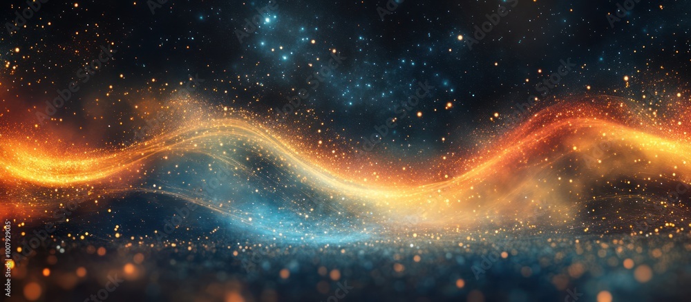 Wall mural : Abstract cosmic background with flowing light and sparkling dust -