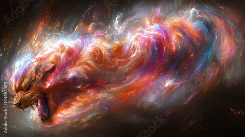 The watermark will not be included on Wall mural.: Abstract cosmic burst featuring vibrant swirling colors and sparkling particles resembling a distant