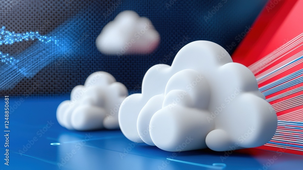The watermark will not be included on Wall mural.: Abstract cosmic clouds with swirling data flows in a vibrant digital environment