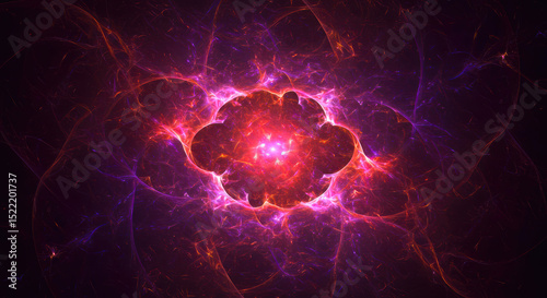 Wall mural : Abstract cosmic nebula energy plasma red purple fractal art background for science technology design