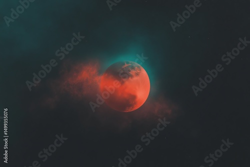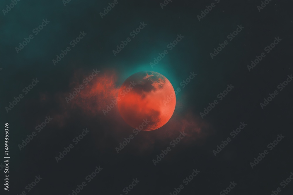 The watermark will not be included on Wall mural.: Abstract cosmic scene with planet and red grunge cloud in dark space background