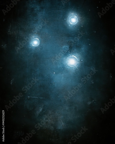 The watermark will not be included on Wall mural.: Abstract cosmic texture with glowing orbs against a dark blue background creating a mysterious and e