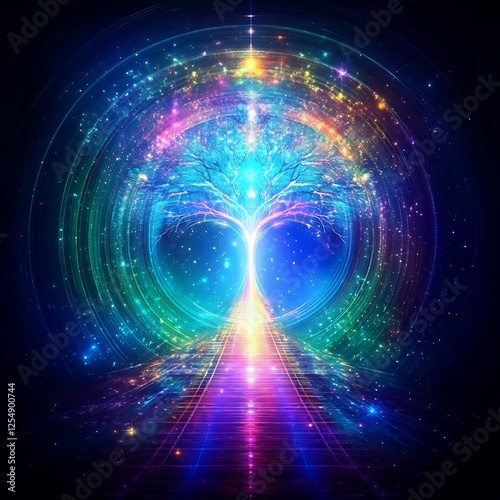 The watermark will not be included on Wall mural.: Abstract cosmic tree of life with luminous pathway to higher dimensions and infinite possibilities