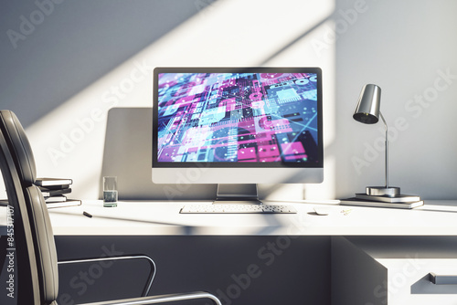 The watermark will not be included on Wall mural.: Abstract creative coding illustration on modern computer monitor, software development concept - 3d r