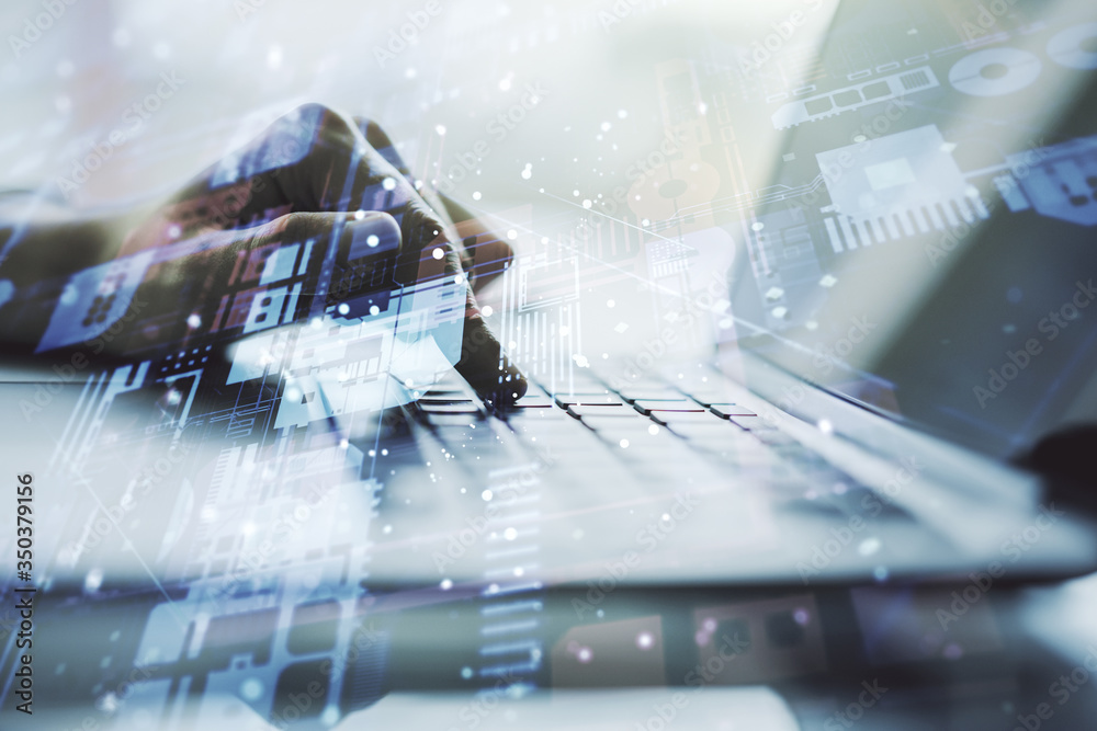 Wall mural abstract creative coding illustration with hands typing on laptop on background, software developmen - Wall murals Wall mural abstract creative coding illustration with hands typing on laptop on background, software developmen - Wall murals