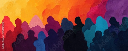 The watermark will not be included on Wall mural.: Abstract crowd silhouette with vibrant colors in a dynamic gradient -