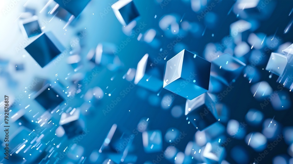 Abstract cubes floating on a digital blue background - futuristic technology concept - ideal for moderWall mural