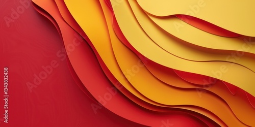 The watermark will not be included on Wall mural.: Abstract curl red yellow orange paper ripple layer shapes white copy space backgrounds dynamic fluid