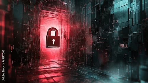 Wall mural : Abstract cyberspace background featuring digital padlock ideal for illustrating secure network, data