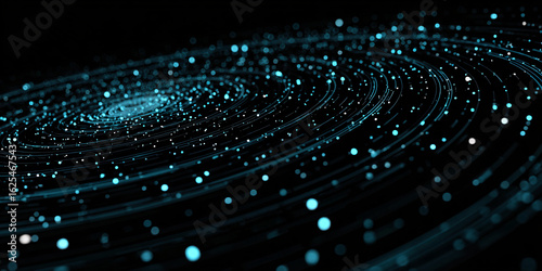 Wall mural : Abstract dark background with circular patterns and particles - blue digital circles on black backgro