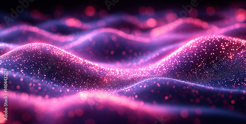 The watermark will not be included on Wall mural.: Abstract dark background with colorful light lines and dots representing data flow