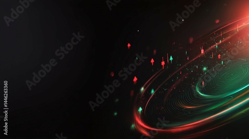 The watermark will not be included on Wall mural.: Abstract dark background with flowing red and green light trails and bokeh -