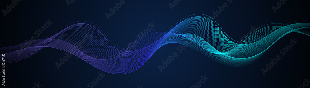 Wall mural abstract dark background with flowing wave lines. glowing wavy lines. shiny colorful moving lines de