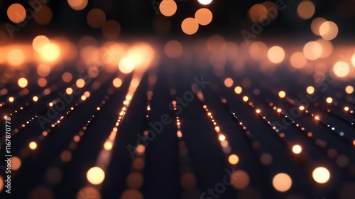 Wall mural : Abstract dark background with glowing orange bokeh lights, creating lines and depth -