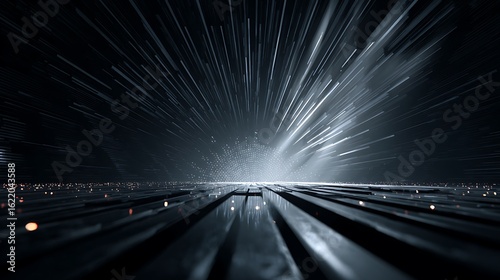 Wall mural abstract dark background with light streaks creating a sense of speed and motion blur, perfect for c