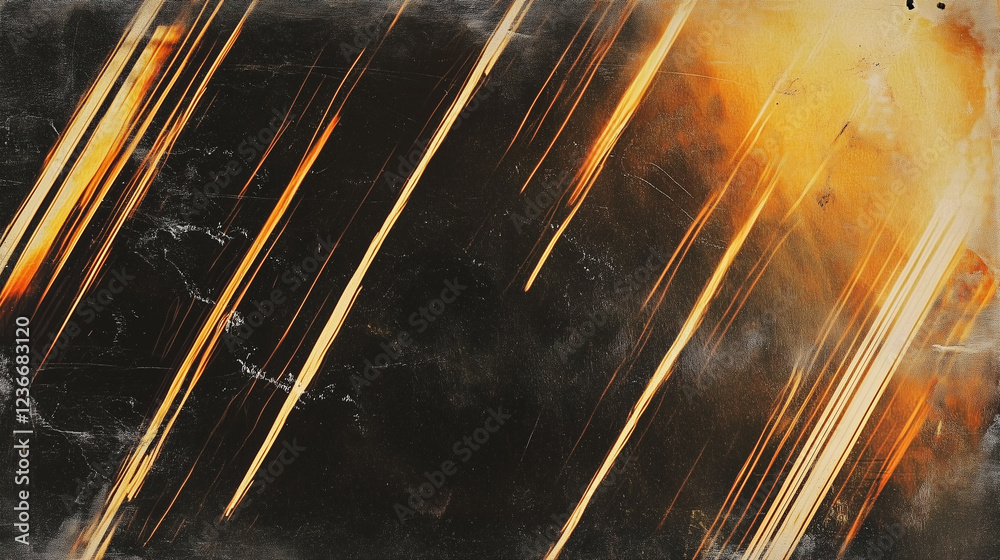 The watermark will not be included on Wall mural.: Abstract dark background with streaks of warm golden-orange light creating dynamic movement and dept