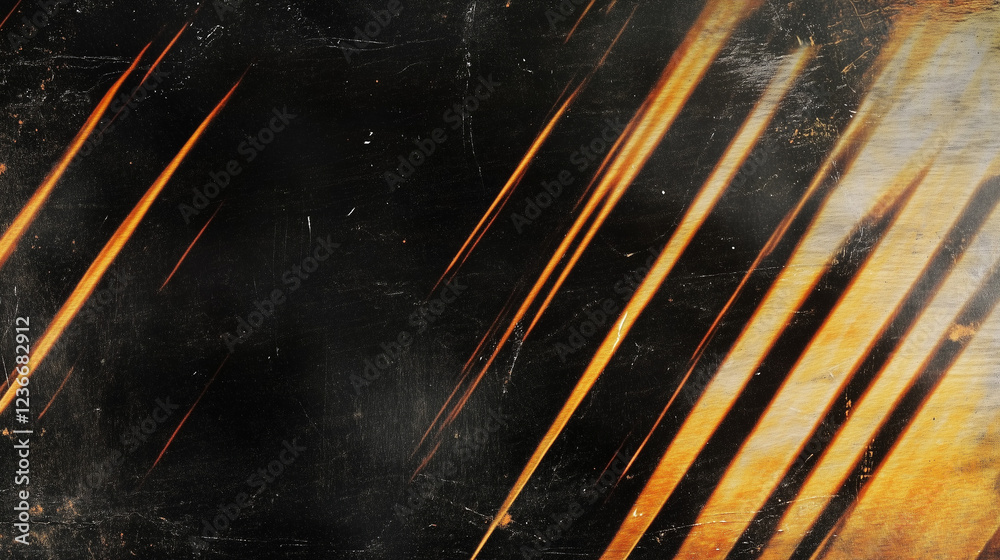 The watermark will not be included on Wall mural.: Abstract dark background with streaks of warm golden-orange light creating dynamic movement and dept