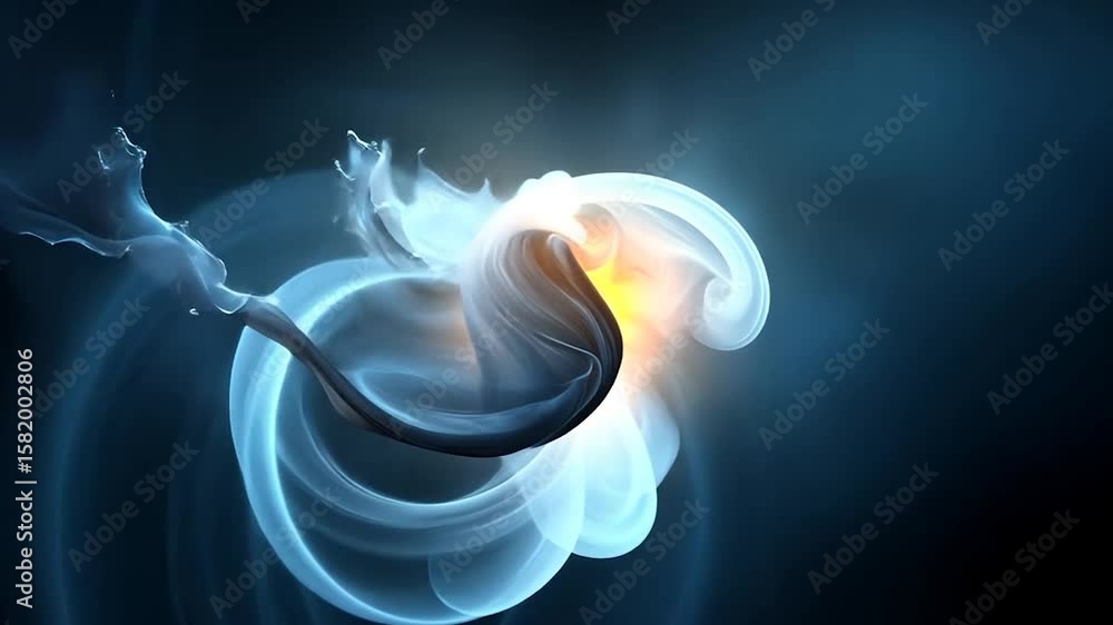 Wall mural abstract dark blue and white fluid forms intertwine in a dynamic composition, illuminated by an inne