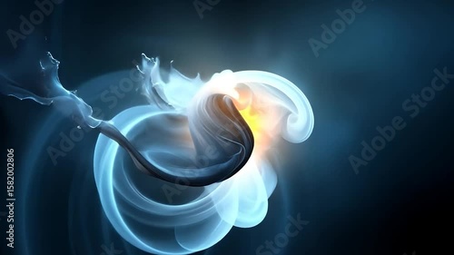 Wall mural : Abstract dark blue and white fluid forms intertwine in a dynamic composition, illuminated by an inne