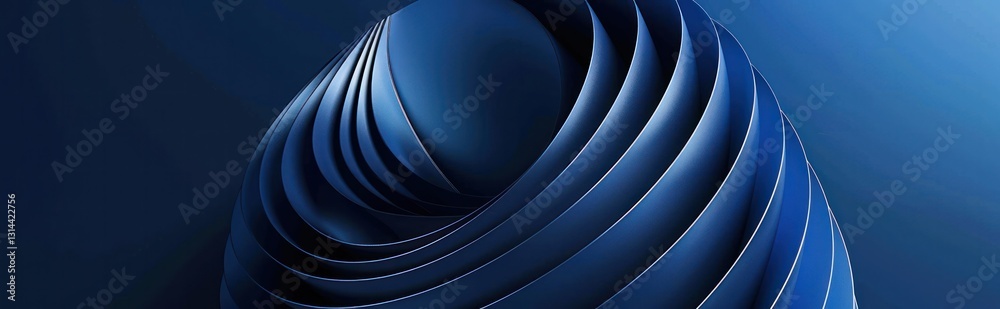 Wall mural abstract dark blue background with three dimensional spiral shape, simple and minimalistic design co