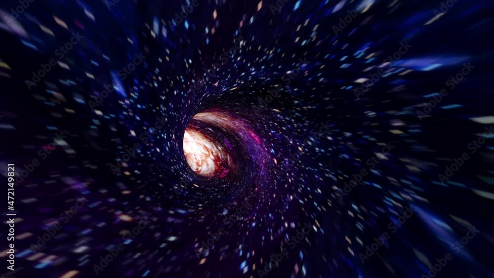 The watermark will not be included on Wall mural.: Abstract dark blue multicolored hyperspace warp tunnel through time and space animation - 4k 3d loop