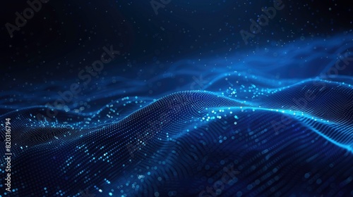 Wall mural abstract dark blue technical background. technology background with line and dot particles surface.