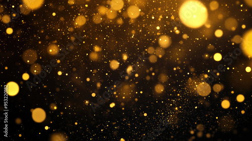 Wall mural abstract dark brown and gold particle backdrop. christmas golden light shed bokeh particles over a b - Wall murals Wall mural abstract dark brown and gold particle backdrop. christmas golden light shed bokeh particles over a b - Wall murals