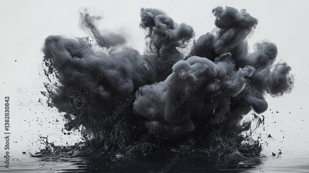 The watermark will not be included on Wall mural.: Abstract dark clouds reflecting in water, creating a moody and atmospheric landscape with swirling p